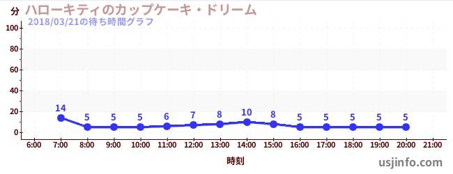 • ハローキティのカップケーキ・ドリーム$B$N(B2018年03月21日の待ち時間