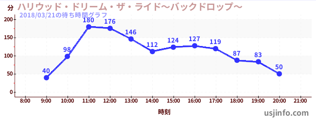 • ハリウッド・ドリーム・ザ・ライド〜バックドロップ〜$B$N(B2018年03月21日の待ち時間