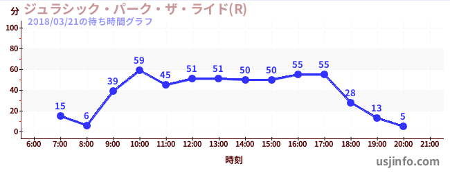 • ジュラシック・パーク・ザ・ライド(R)$B$N(B2018年03月21日の待ち時間