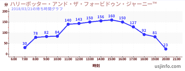 • ハリーポッター・アンド・ザ・フォービドゥン・ジャーニー™$B$N(B2018年03月21日の待ち時間