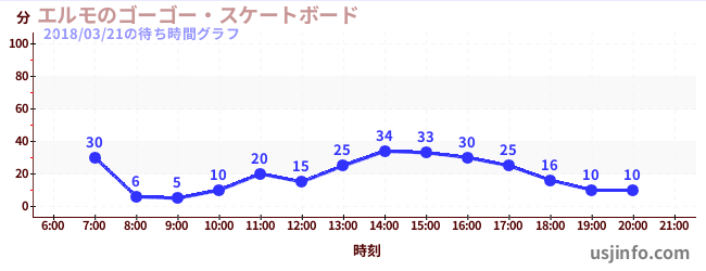 • エルモのゴーゴー・スケートボード$B$N(B2018年03月21日の待ち時間