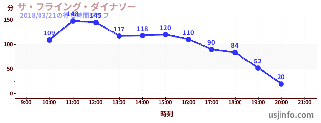 • ザ・フライング・ダイナソー$B$N(B2018年03月21日の待ち時間