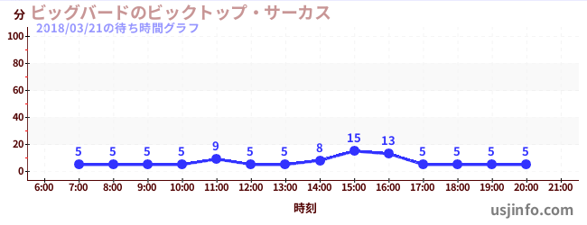• ビッグバードのビックトップ・サーカス$B$N(B2018年03月21日の待ち時間