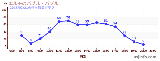 • エルモのバブル・バブル$B$N(B2018年03月21日の待ち時間