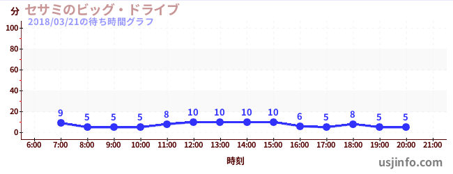 • セサミのビッグ・ドライブ$B$N(B2018年03月21日の待ち時間
