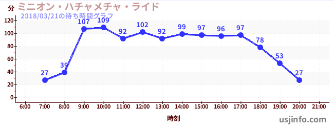 • ミニオン・ハチャメチャ・ライド$B$N(B2018年03月21日の待ち時間