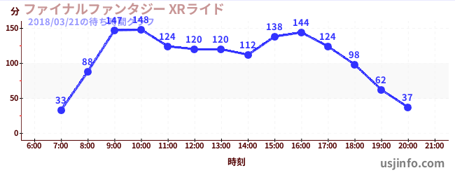 • ファイナルファンタジー XRライド$B$N(B2018年03月21日の待ち時間