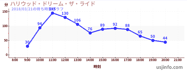 • ハリウッド・ドリーム・ザ・ライド$B$N(B2018年03月21日の待ち時間