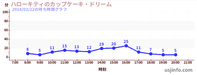 • ハローキティのカップケーキ・ドリーム$B$N(B2018年03月22日の待ち時間