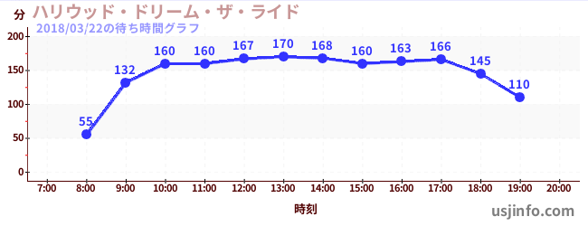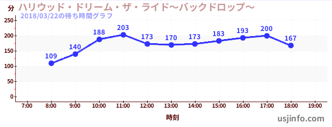• ハリウッド・ドリーム・ザ・ライド$B$N(B2018年03月22日の待ち時間