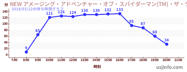 • NEW アメージング・アドベンチャー・オブ・スパイダーマン(TM)・ザ・ライド 4K3D$B$N(B2018年03月22日の待ち時間
