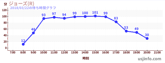 • ジョーズ(R)$B$N(B2018年03月22日の待ち時間