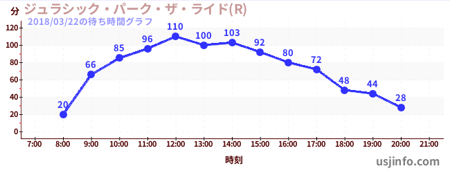 • ジュラシック・パーク・ザ・ライド(R)$B$N(B2018年03月22日の待ち時間
