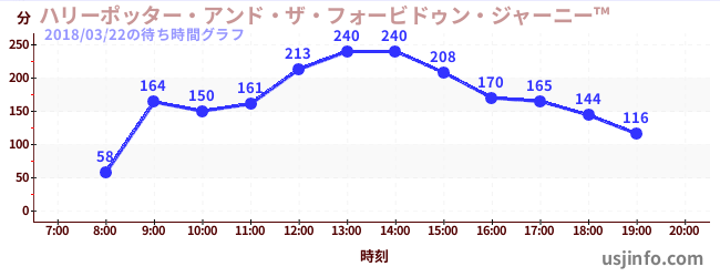 • ハリーポッター・アンド・ザ・フォービドゥン・ジャーニー™$B$N(B2018年03月22日の待ち時間