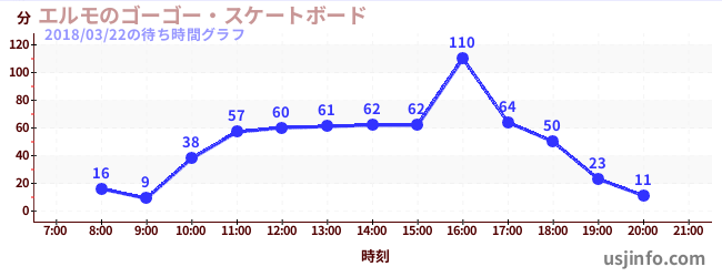 • エルモのゴーゴー・スケートボード$B$N(B2018年03月22日の待ち時間