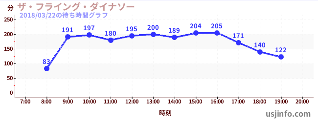 • ザ・フライング・ダイナソー$B$N(B2018年03月22日の待ち時間