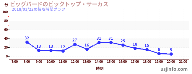 • ビッグバードのビックトップ・サーカス$B$N(B2018年03月22日の待ち時間