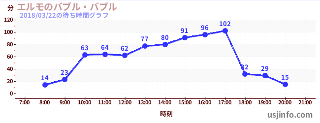 • エルモのバブル・バブル$B$N(B2018年03月22日の待ち時間