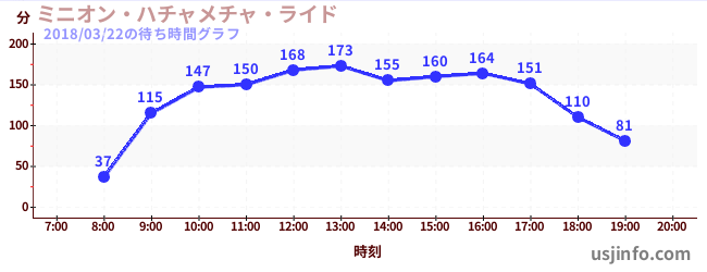 • ミニオン・ハチャメチャ・ライド$B$N(B2018年03月22日の待ち時間