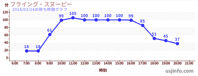 • フライング・スヌーピー$B$N(B2018年03月24日の待ち時間