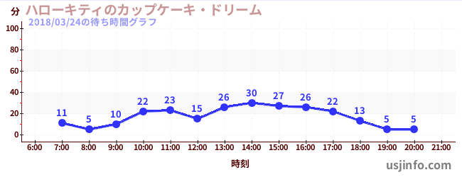 • ハローキティのカップケーキ・ドリーム$B$N(B2018年03月24日の待ち時間