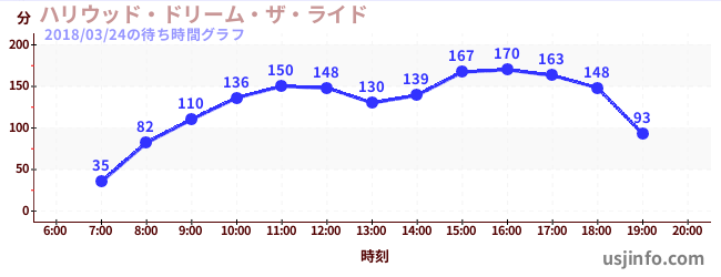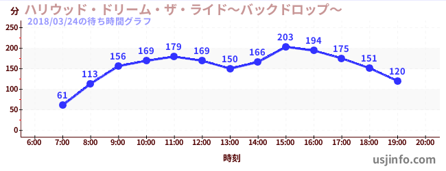 • ハリウッド・ドリーム・ザ・ライド$B$N(B2018年03月24日の待ち時間