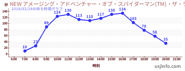 • NEW アメージング・アドベンチャー・オブ・スパイダーマン(TM)・ザ・ライド 4K3D$B$N(B2018年03月24日の待ち時間