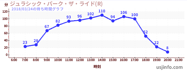 • ジュラシック・パーク・ザ・ライド(R)$B$N(B2018年03月24日の待ち時間