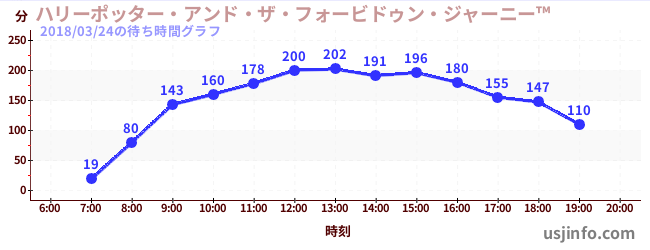 • ハリーポッター・アンド・ザ・フォービドゥン・ジャーニー™$B$N(B2018年03月24日の待ち時間