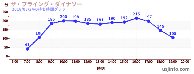 • ザ・フライング・ダイナソー$B$N(B2018年03月24日の待ち時間