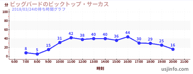 • ビッグバードのビックトップ・サーカス$B$N(B2018年03月24日の待ち時間