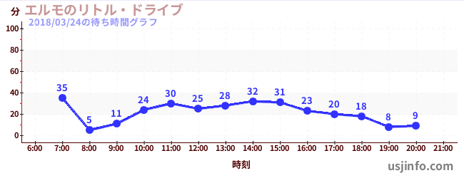 • エルモのリトル・ドライブ$B$N(B2018年03月24日の待ち時間