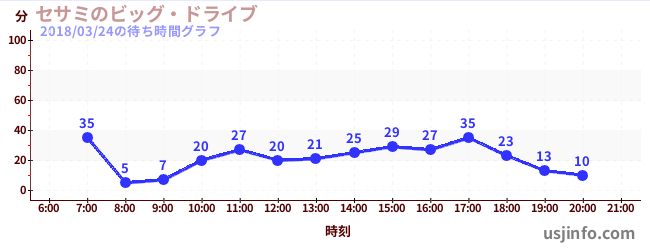 • セサミのビッグ・ドライブ$B$N(B2018年03月24日の待ち時間