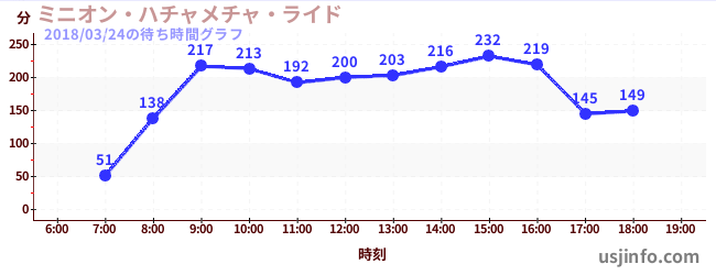 • ミニオン・ハチャメチャ・ライド$B$N(B2018年03月24日の待ち時間