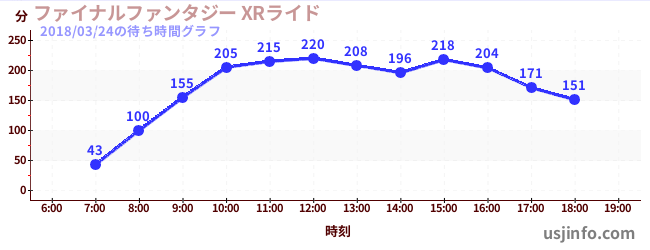 • ファイナルファンタジー XRライド$B$N(B2018年03月24日の待ち時間