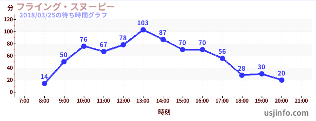 • フライング・スヌーピー$B$N(B2018年03月25日の待ち時間