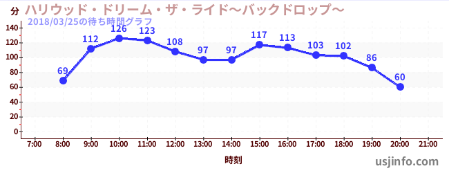 • ハリウッド・ドリーム・ザ・ライド〜バックドロップ〜$B$N(B2018年03月25日の待ち時間