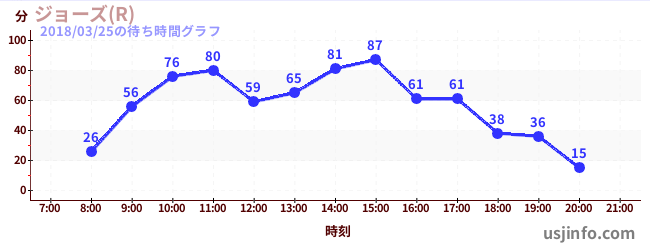 • ジョーズ(R)$B$N(B2018年03月25日の待ち時間