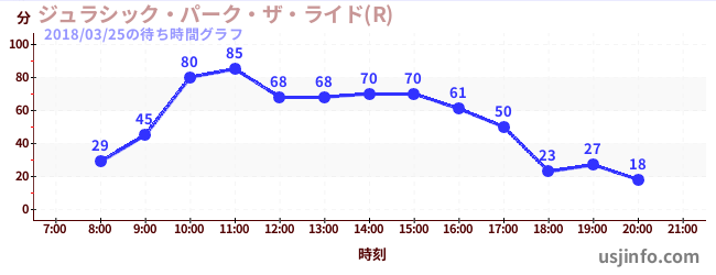 • ジュラシック・パーク・ザ・ライド(R)$B$N(B2018年03月25日の待ち時間
