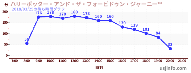 • ハリーポッター・アンド・ザ・フォービドゥン・ジャーニー™$B$N(B2018年03月25日の待ち時間