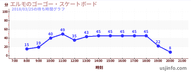 • エルモのゴーゴー・スケートボード$B$N(B2018年03月25日の待ち時間