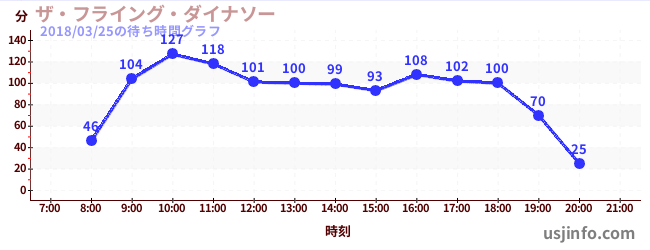 • ザ・フライング・ダイナソー$B$N(B2018年03月25日の待ち時間
