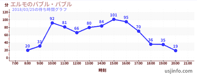 • エルモのバブル・バブル$B$N(B2018年03月25日の待ち時間