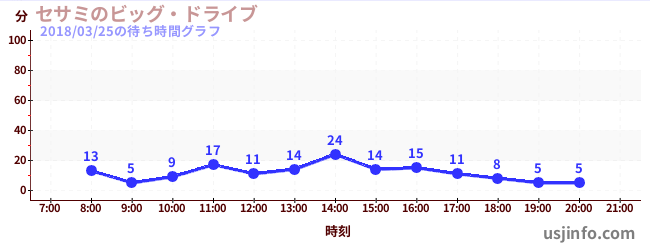 • セサミのビッグ・ドライブ$B$N(B2018年03月25日の待ち時間