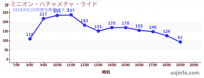 • ミニオン・ハチャメチャ・ライド$B$N(B2018年03月25日の待ち時間