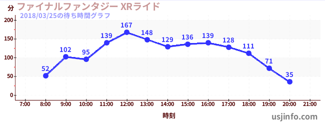 • ファイナルファンタジー XRライド$B$N(B2018年03月25日の待ち時間