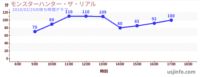 • モンスターハンター・ザ・リアル$B$N(B2018年03月25日の待ち時間