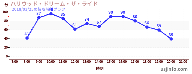 • ハリウッド・ドリーム・ザ・ライド$B$N(B2018年03月25日の待ち時間