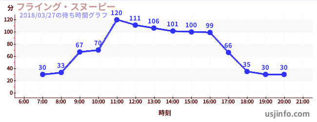 • フライング・スヌーピー$B$N(B2018年03月27日の待ち時間