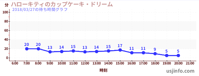 • ハローキティのカップケーキ・ドリーム$B$N(B2018年03月27日の待ち時間